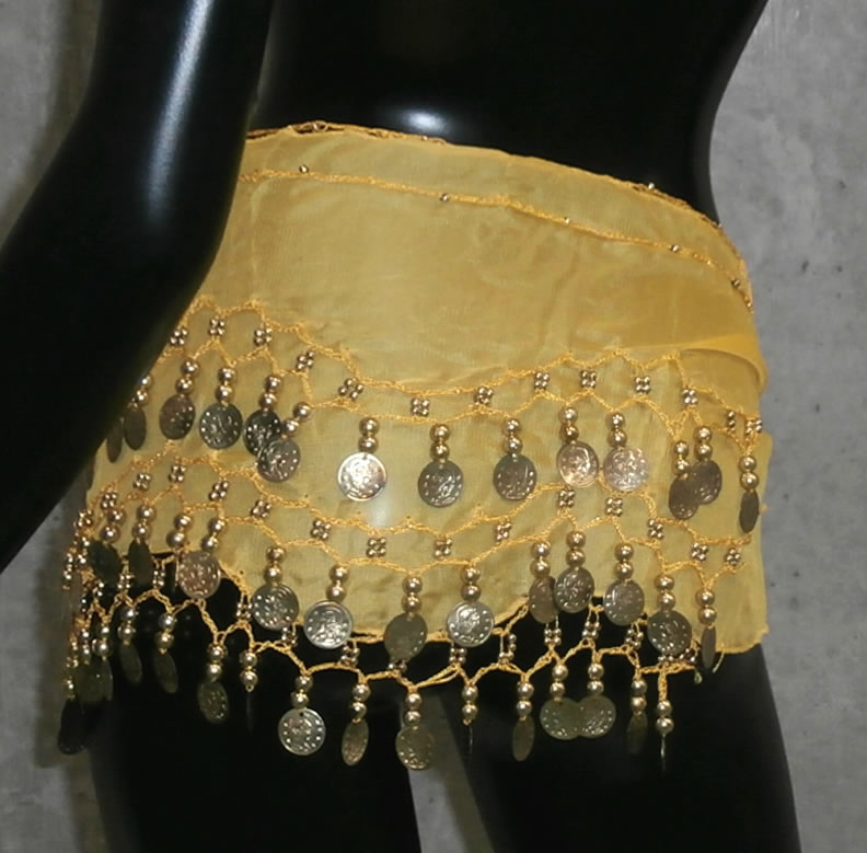 ベリーダンス ヒップスカーフ マルチカラーシフォン&ゴールドコイン