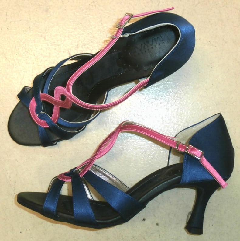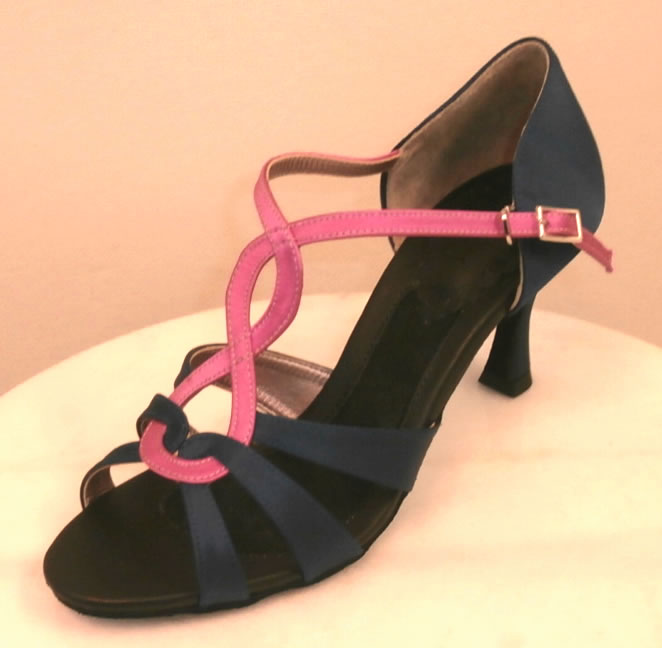 色:青(Dark Blue)+ ピンク(Pink) 材質:サテン(Satin) ヒール:ラテンB7cm(標準)