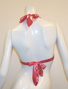 紐はネックと背中で結ぶタイプでストレッチ素材です。