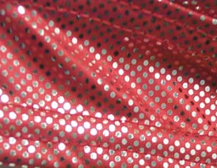 生地を拡大した写真です。 ↑ 赤地にシルバーの細かい点々です。