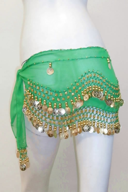 色:グリーン(緑)にゴールドのコインがあしらってあります。ベリーダンス用のヒップスカーフです。